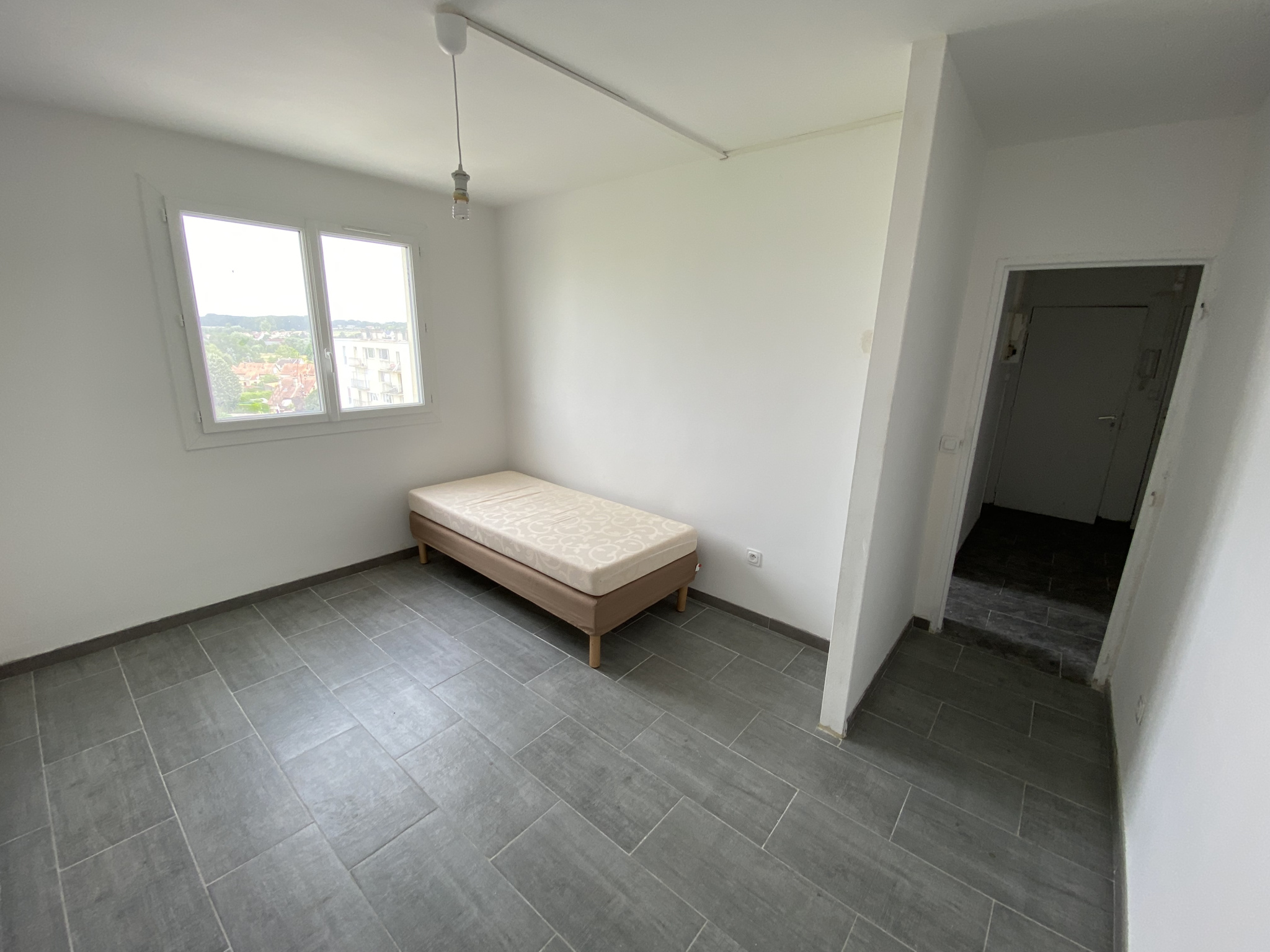 Une entrée, un séjour ouvrant sur un balcon avec vue dégagée et agréable, une cuisine indépendante, une salle de bain, des WC et un cellier.