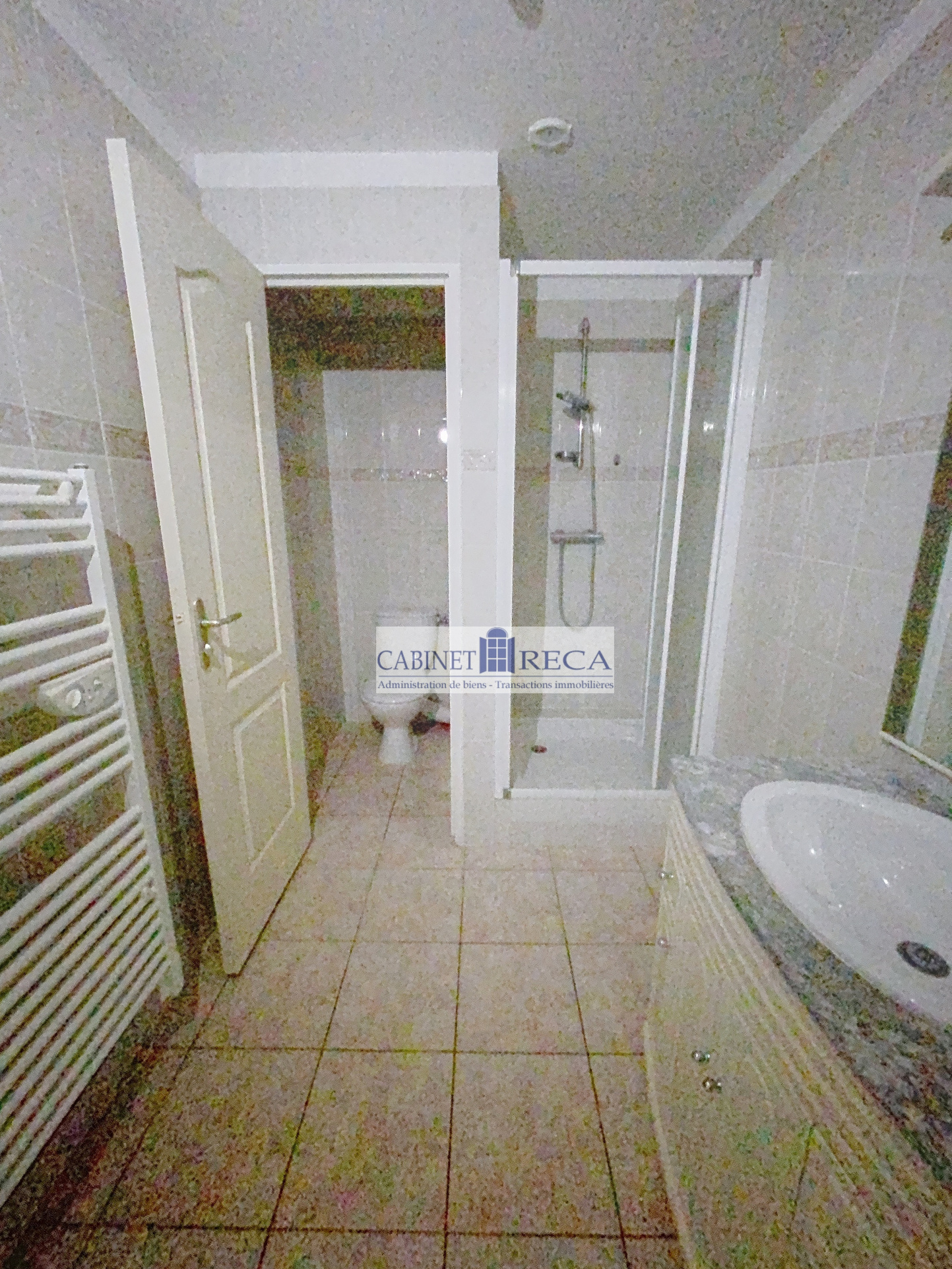 Hall d'entrée, séjour, cuisine séparée équipée et aménagée, 3 chambres, salle d'eau, 2 WC.